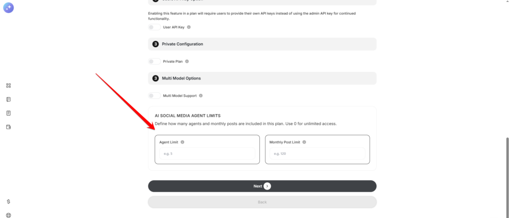 As an administrator, you have full control over feature accessibility through plan customization. When creating or editing a service plan, you can define specific usage boundaries to ensure the platform remains balanced and aligned with your pricing tiers.