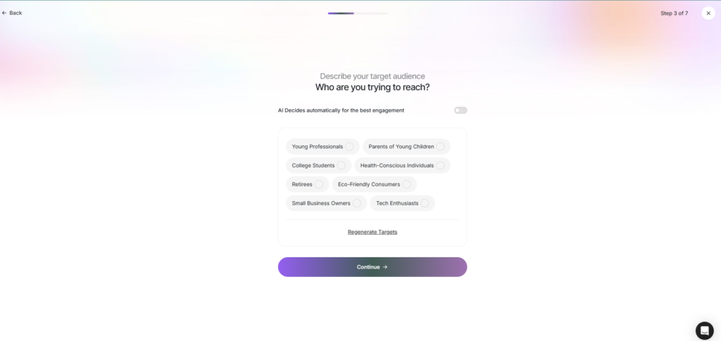 AI Auto-Select: Let the AI analyze your brand and automatically identify the highest-converting audience.