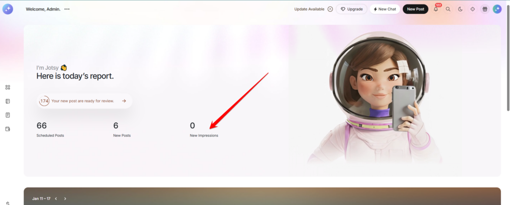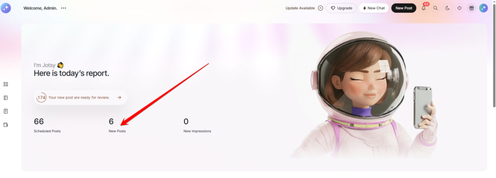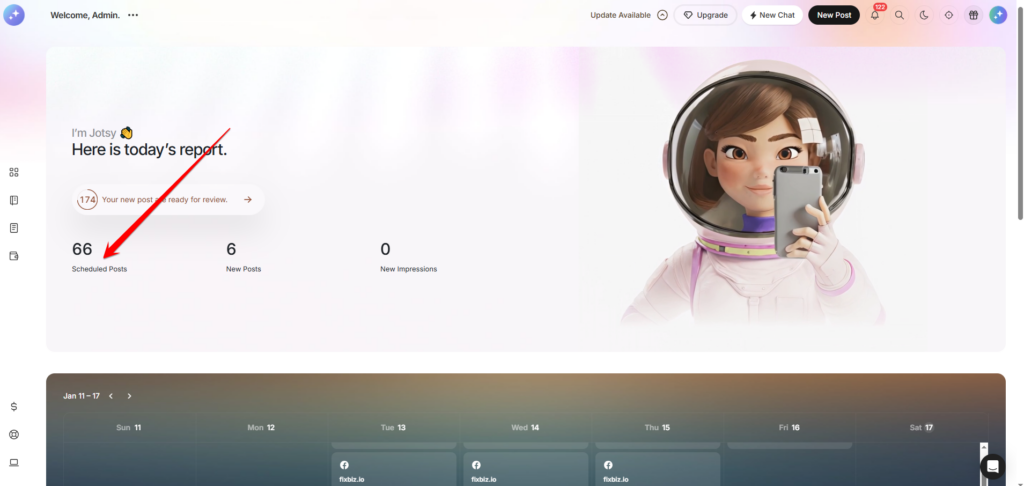 - Scheduled Posts: This card displays the total number of posts currently queued and set to be published by your agents.