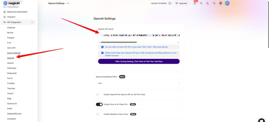 API Management: Within the admin panel, you can securely input and update these keys to maintain uninterrupted service for your users.