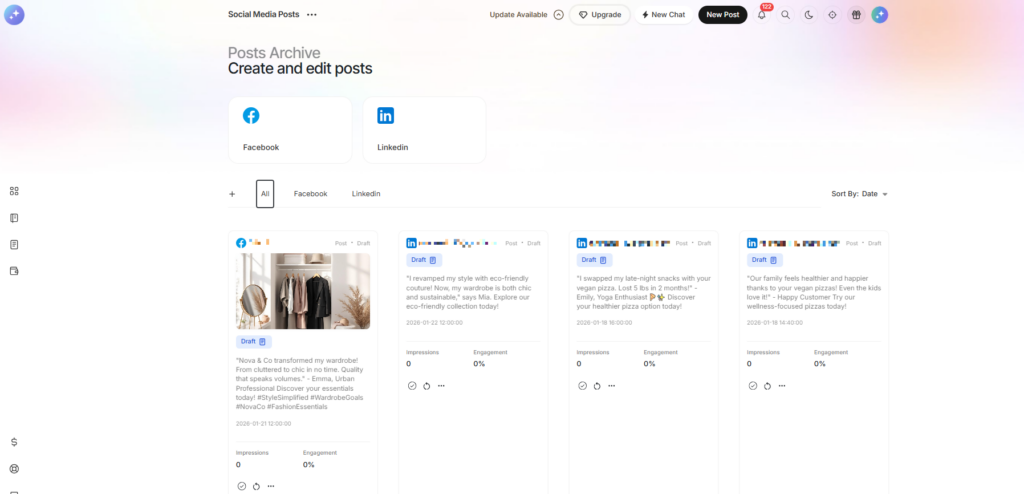The Archived Posts section serves as your platform’s historical library. Every post that has completed its journey—from generation to publication—is stored here. This allows you to review past performance, maintain a record of your brand voice, and repurpose successful content.
