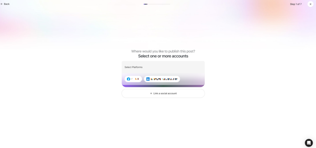 Choose where this agent will live. You can select platforms like LinkedIn, X (Twitter), Instagram, or Facebook.