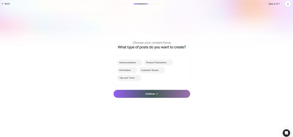 Choose the Type of Posts the agent should focus on (e.g., Educational, Promotional, Behind-the-Scenes, or Industry News).