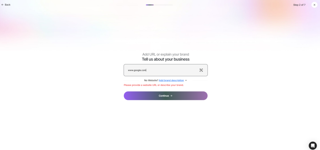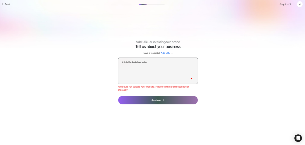 Setting up a new agent is a guided 7-step process. This ensures the AI deeply understands your brand before it starts generating content.