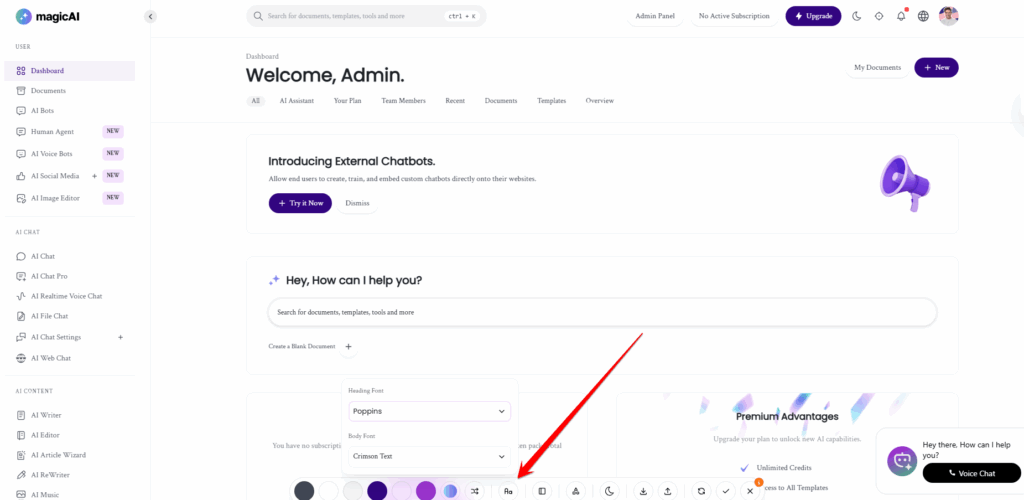 The Live Customizer empowers you to take complete control over your AI platform’s appearance—no coding required. Whether you’re a beginner or an advanced user, this intuitive feature makes it easy to personalize your platform’s design with just a few clicks.
